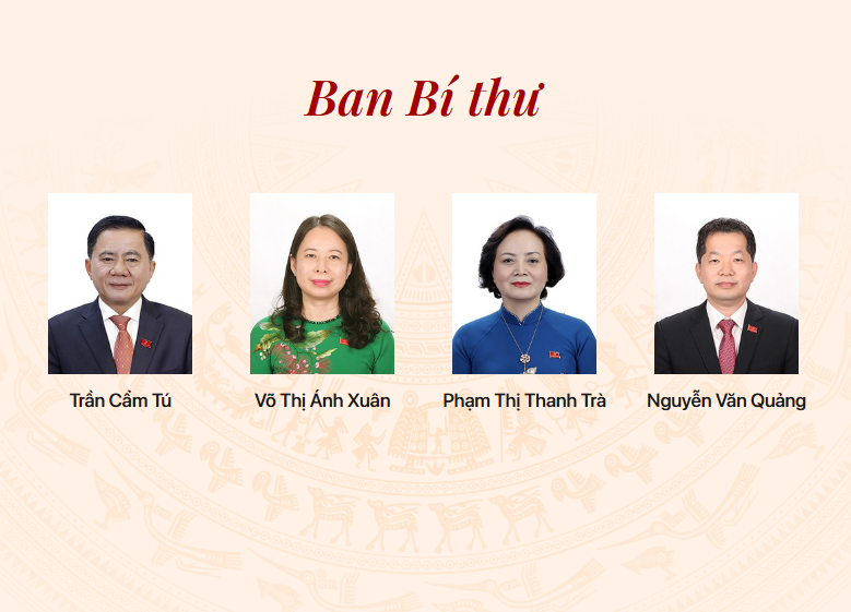 Trên cơ sở kết quả giới thiệu của Ban Chấp hành Trung ương Đảng, Bộ Chính trị khóa XIV đã phân công đồng chí Trần Cẩm Tú, Ủy viên Bộ Chính trị tái giữ chức Thường trực Ban Bí thư khóa XIV./.