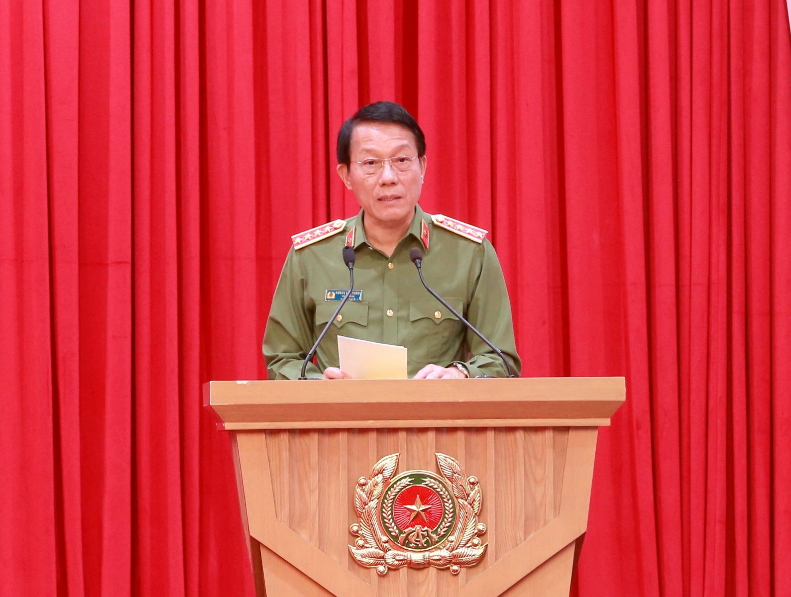 Cùng dự có các đồng chí Ủy viên Ban Thường vụ Đảng ủy Công an Trung ương: Chủ tịch nước Lương Cường; Thủ tướng Chính phủ Phạm Minh Chính.