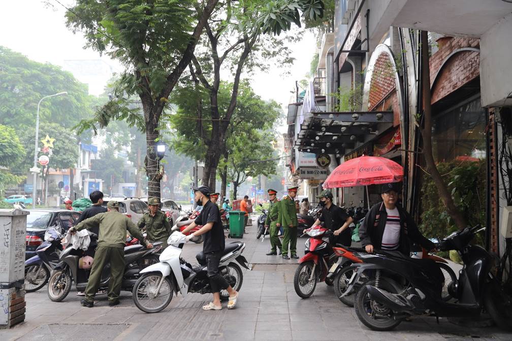 Thay vì xử phạt ngay, Công an phường Cửa Nam đã áp dụng cách làm mềm dẻo, kết hợp giữa nhắc nhở, hướng dẫn, hỗ trợ người dân sắp xe sao cho phù hợp với không gian từng tuyến phố. Trên các tuyến phố đông đúc như Bà Triệu, Lý Thường Kiệt, Quang Trung,… lực lượng Cảnh sát trật tự thường xuyên có mặt vào để hướng dẫn người dân đỗ xe theo hàng lối, đồng bộ. “Đầu xe máy hướng ra ngoài, sát mép vỉa hè, tạo khoảng trống bên trong vỉa hè cho người đi bộ”, là những hướng dẫn của lực lượng công an phường với các gia đình, hộ kinh doanh. Việc này giúp tránh tình trạng người dân dừng xe tràn lan trước cửa hàng hoặc để xe chiếm hết lối vỉa hè khiến người đi bộ phải đi xuống lòng đường.
