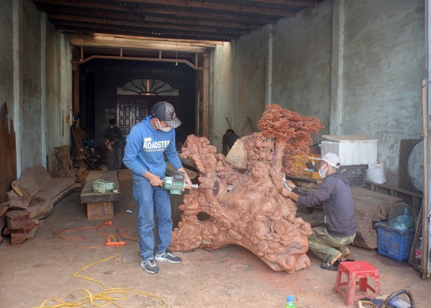 Với nguồn vốn 20 triệu đồng từ Quỹ hỗ trợ tái hòa nhập cộng đồng cùng số tiền gia đình hỗ trợ, cuối năm 2020, anh Lương mở xưởng mộc nhỏ. Ban đầu, anh thu mua gốc cây cà phê, cao su về khắc, chạm đồ mỹ nghệ để bán. Dần dần, anh mở rộng quy mô xưởng mộc với hai cơ sở, vừa trưng bày, kinh doanh vừa chế tác với vốn điều hành hiện nay hơn 1 tỷ đồng.